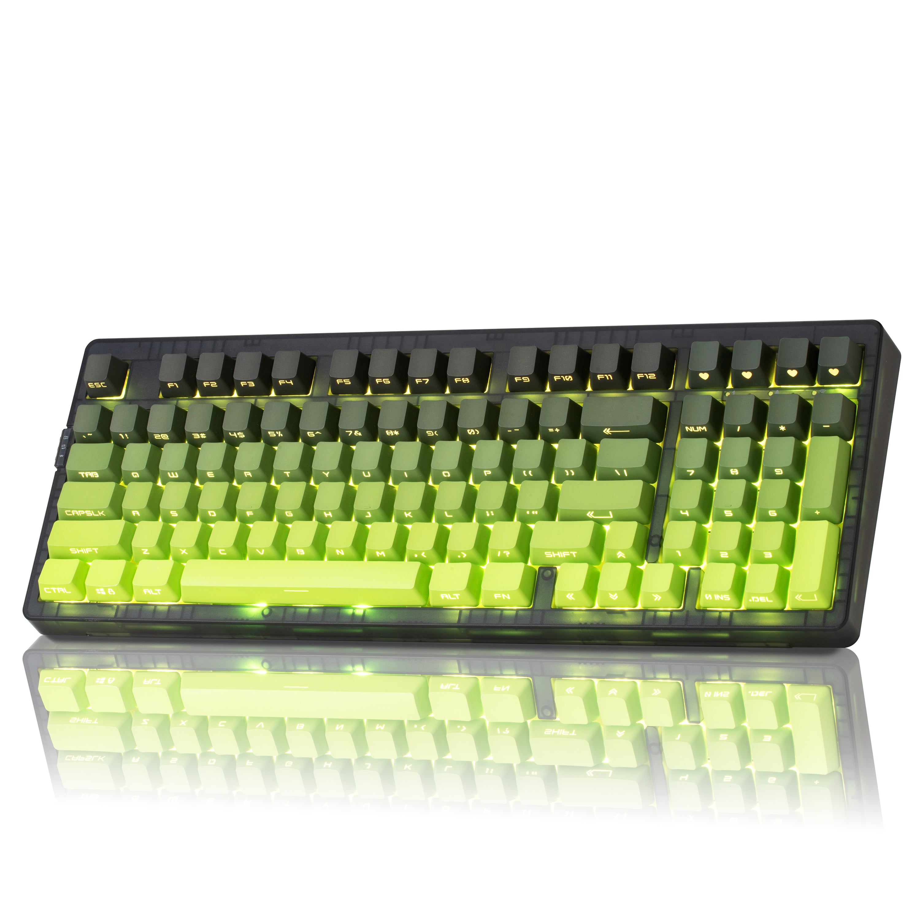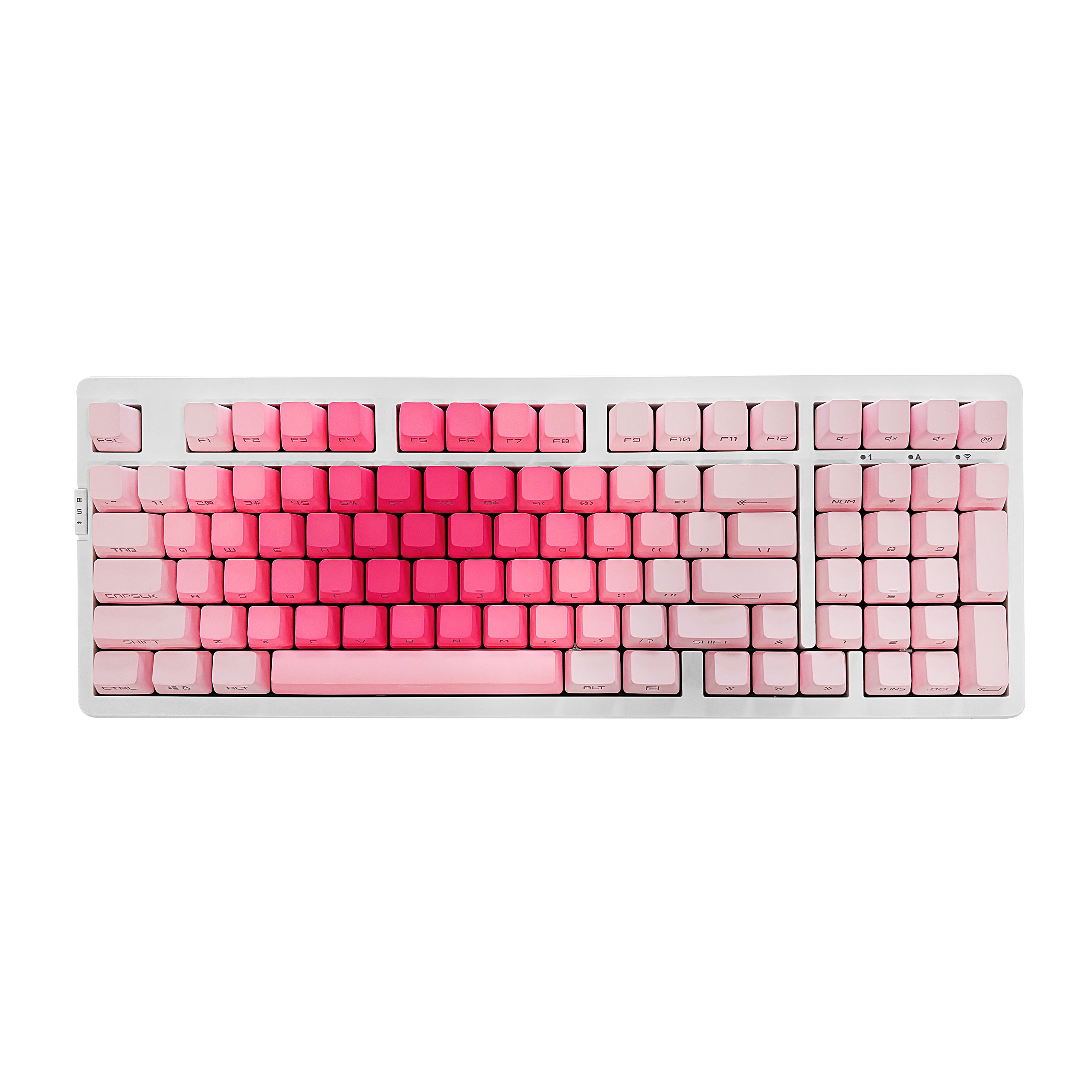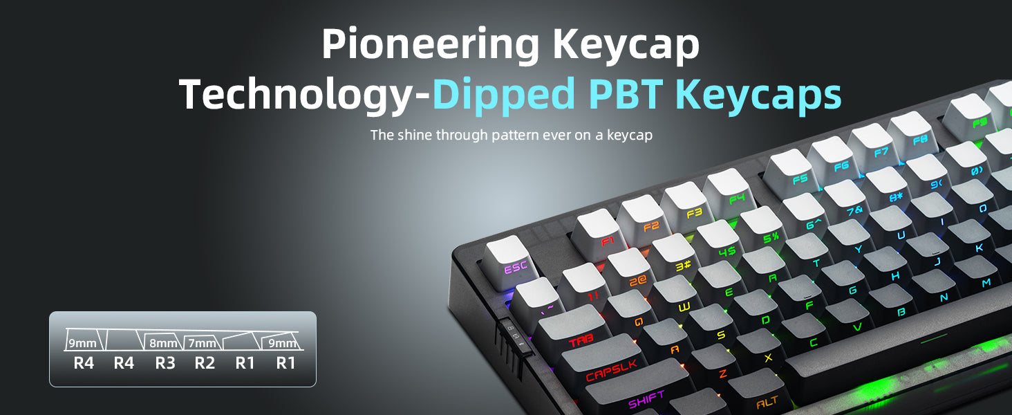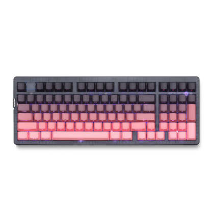 - 【Dipped PBT Keycaps with Clear Legends】Crafted from high-purity PBT with Dipped technology, the keycaps resist shine and wear while featuring a pink gradient theme that glows with RGB. Side-printed, molded legends ensure long-term clarity and smooth light diffusion.