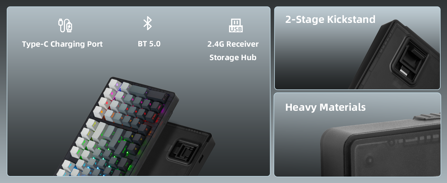 - 【Comfortable Ergonomic Typing Design】Designed with a dual-angle kickstand, OEM-profile keycaps, and side-printed legends to reduce visual clutter. Type longer, more comfortably, and with less strain—ideal for work or extended gaming sessions.