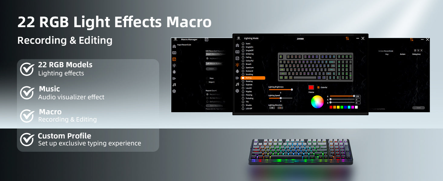 - 【RGB Lighting with 22 Preset Modes】With Transparent case,You can enjoy vibrant RGB lighting with 22 preset modes, including south-facing LEDs and edge glow. Combined with high-transparency keycaps, the keyboard creates an immersive, stylish setup right out of the box.