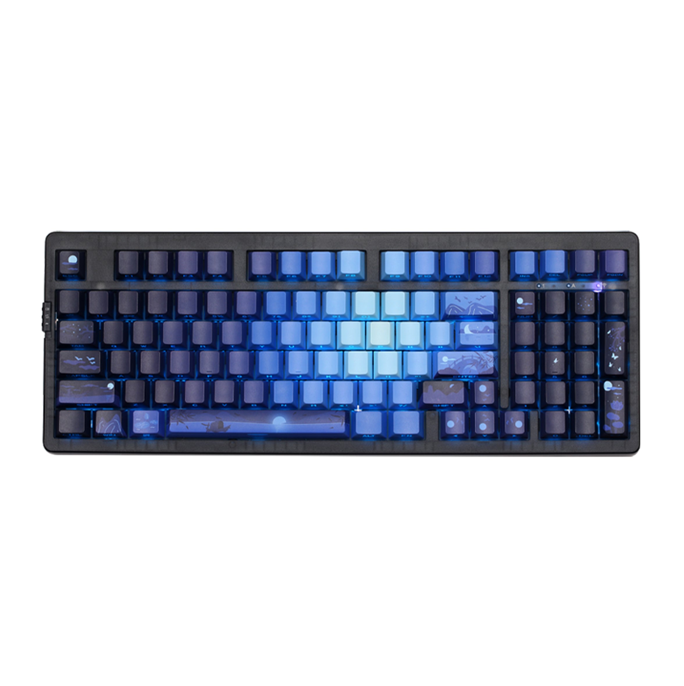 - 【5 Side Dye Sublimation Keycaps with Clear Legends】Crafted from high-purity PBT with Dye Sublimation technology, the keycaps resist shine and wear while featuring a Starry Night theme that glows with RGB. Side-printed, molded legends ensure long-term clarity and smooth light diffusion.