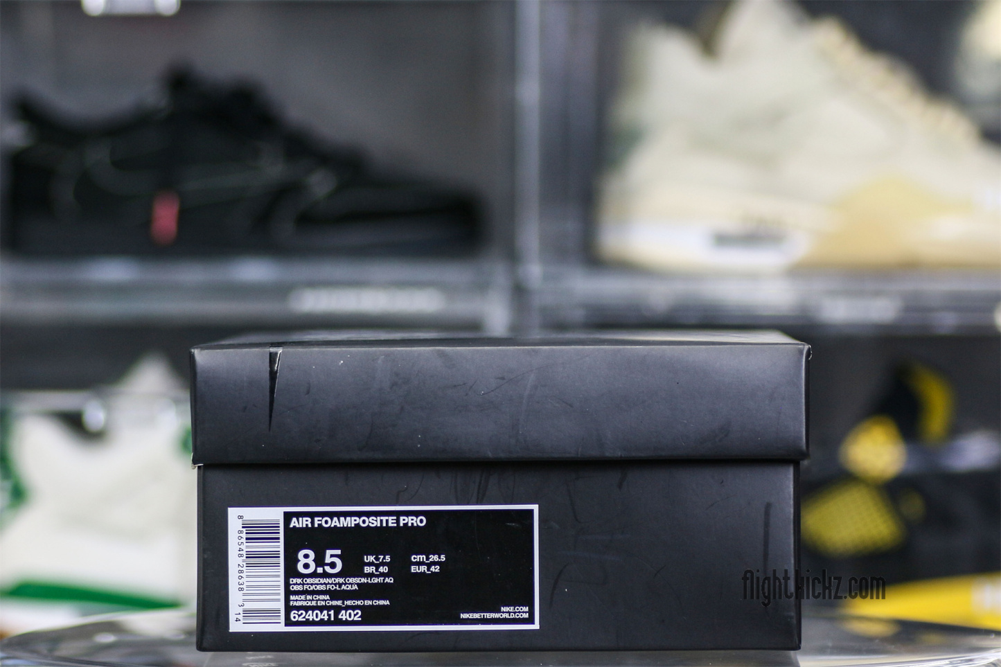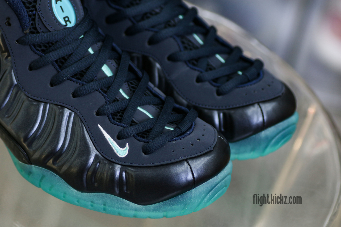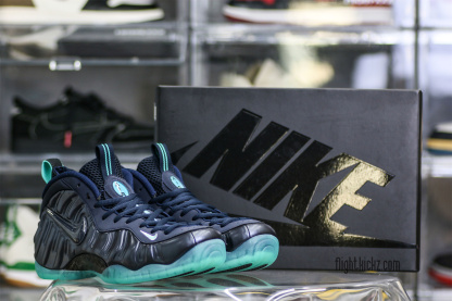 The Nike Air Foamposite Pro ‘Aqua’ takes on a monochromatic Dark Obsidian finish on its Foamposite upper. The sculped synthetic shell is complemented by a crystal Swoosh in matching Dark Obsidian, while the sneaker’s remaining branding hits are rendered in Light Aqua. The vibrant hue is repeated on the shoe’s dual pull loops and semi-translucent rubber outsole underfoot.